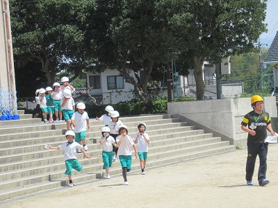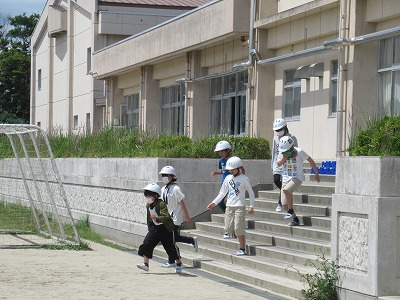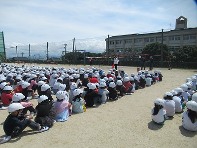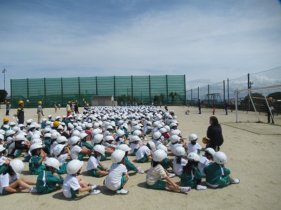 子どもたちは、集中して、避難訓練に参加できました。 「もしも」の時に、自分の身を守り、安全に対応できる力を、これからもつけていきたいと思います。 |
