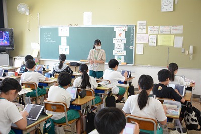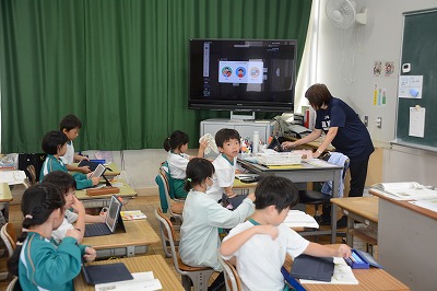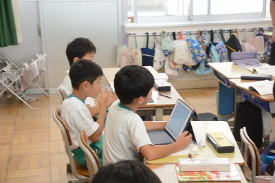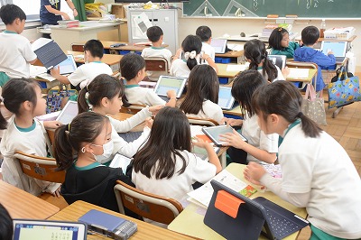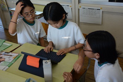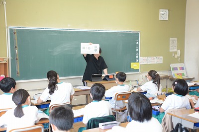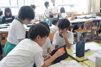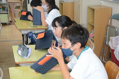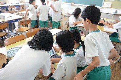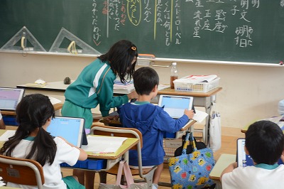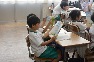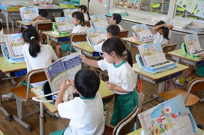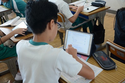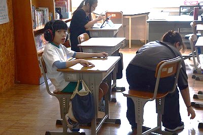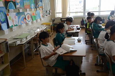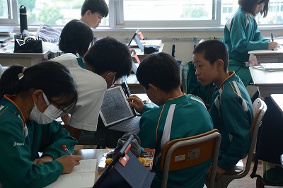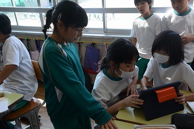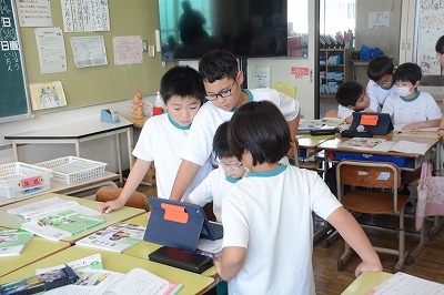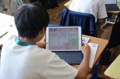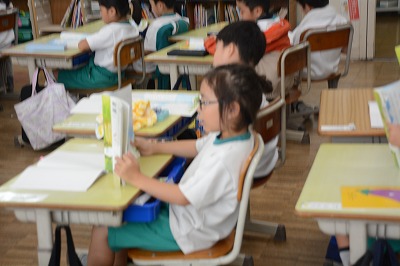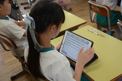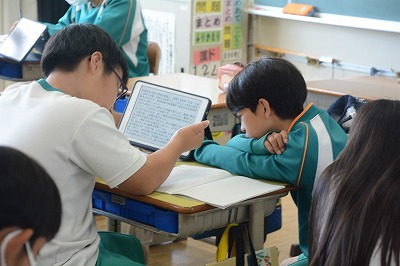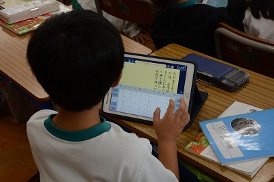 今日から新しい内容に入りました。まずは教科書を見ながらデジタル教科書を使って範読を聴きます。
