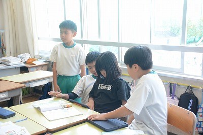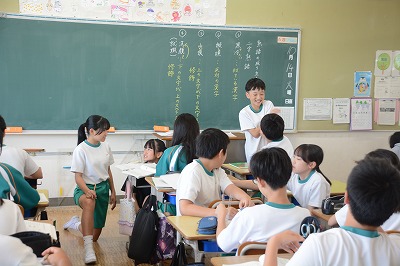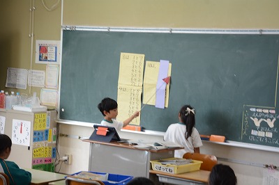 テキストの文章を学習した後、自分たちは学級のどんなことが紹介できるか話し合いました。