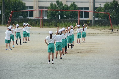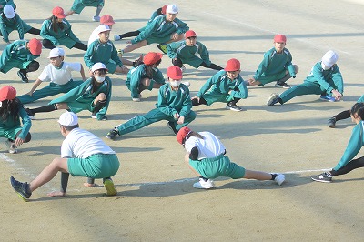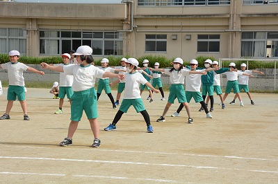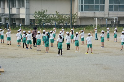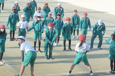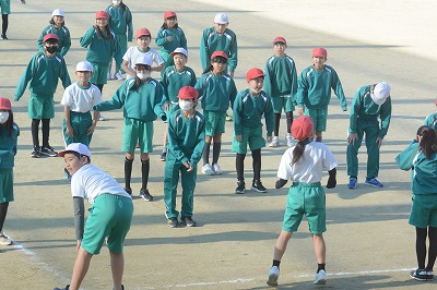 ◇朝 係の児童が前に出て、10は〇といくつと全員で声をそろえて発表しました。