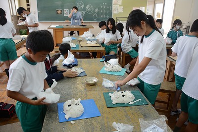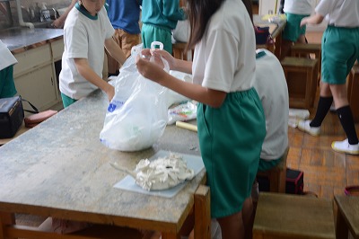 6年生では、粘土でお面づくりをしています。図工室に行くとどの子もどの子も「子どもの作品?」というくらい素晴らしい作品ばかりです。担当の指導も素晴らしいですが、子どもたちの能力は無限だとあらためて思いました。