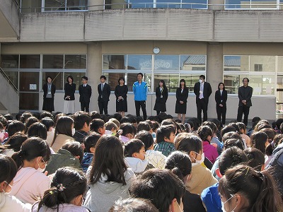 最後にお別れする先生に気持ちを込めて、全校で感謝の言葉を伝えました。