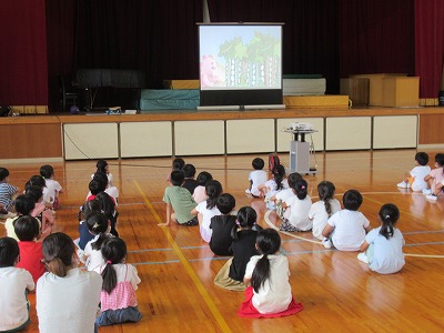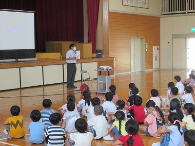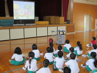 誘拐の危険があるのはどんな場所なのか、もし誘拐されそうになったときにはどんな対応をすればいいのかなどをわかりやすいお話とビデオで教えてくださいました。