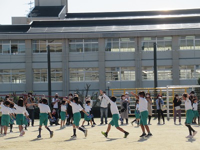 冬休み中、静まり返っていた運動場に元気な姿が戻ってきました。日差しはありましたが風はとても冷たかったです。子どもたちはそれに負けていません。