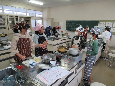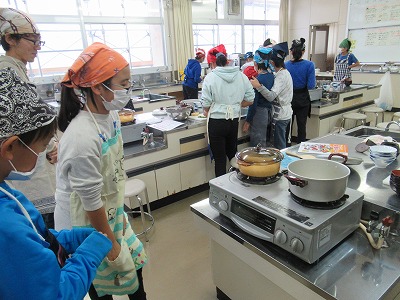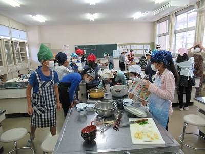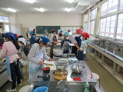 3時間目、5年生は調理実習をしていました。