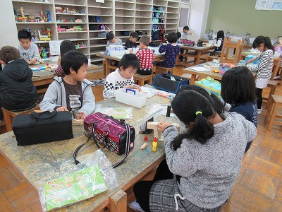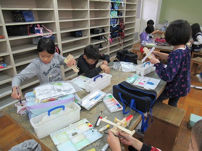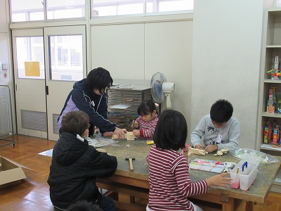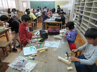 3年生は図工の時間に木を使った作品づくりに取り組んでいます。