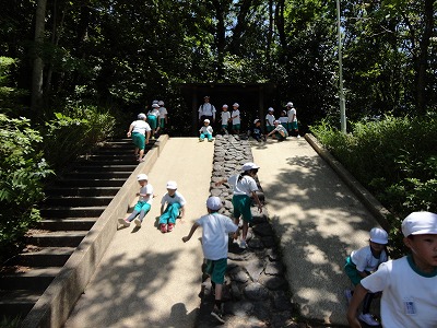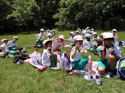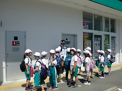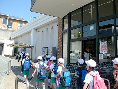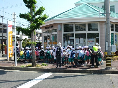 年生は 町たんけんもかねて 春の遠足に出かけました。郵便局・マルヤス・セイムスを見学させていただき、ユニバーサルデザインを見つけました。思いやり駐車場やスロープ、車止めなどを見つけました。また、道の途中でも点字ブロックやさまざまな標識を見つけては、「あったよ!」と教え合っていました。そして、野鳥公園ではお楽しみのお弁当。みんなとっても嬉しそうに食べていました。遊具や大縄跳びで遊んだあと、公園の掃除をして帰路につきました。