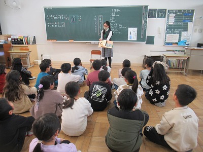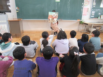 おはなしのへやグループの方が、2年生に読み聞かせをしてくれました。