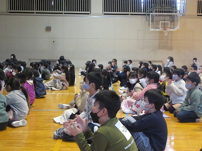 6年生は各学年の発表を温かい表情で見るとともに手拍子をしながら楽しむなど在校生の心を正面から受け取ってくれていました。