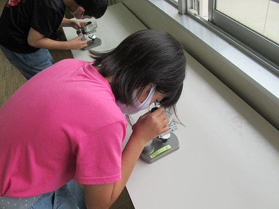 ▼観察する子どもたち
