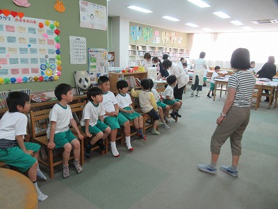 図書室前で検査についてお話を聞いて、男女別に行います。