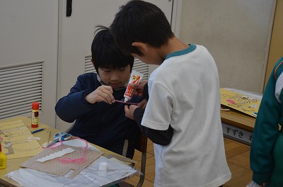 ※一人で集中したり、友だちと協力したり、相談したりしながら作品作りをしています。