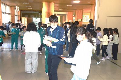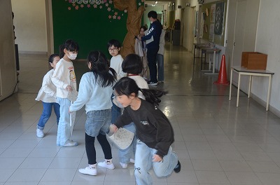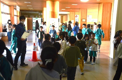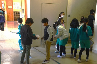 楽しい学校にするために児童会が話し合って「キーパーソンをさがせ」という行事を計画してくれました。のほほん広場のモニターにキーパーソンが繰り返し流されています。参加者はそのキーパーソンを探し、背中に貼っている文字を確認します。そしてその文字を並べ替えるとある言葉が出来上がります。子どもたちはとても楽しそうに校舎内を移動してキーパーソンを探していました。