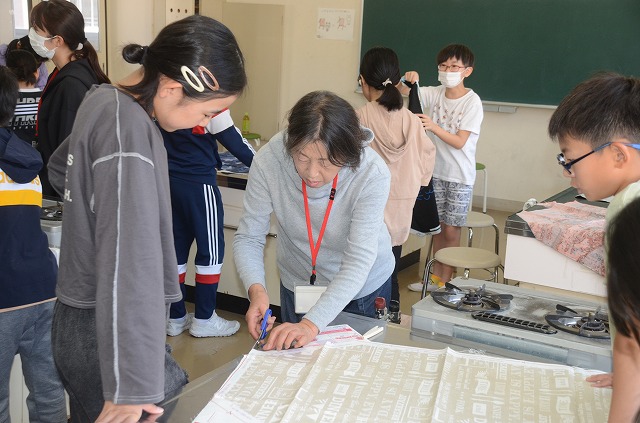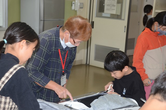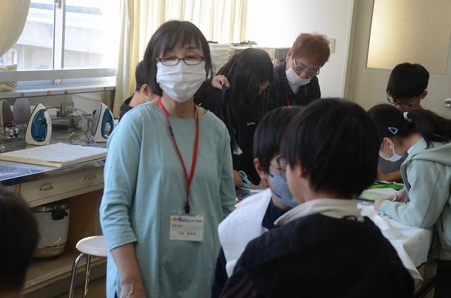 5年生の家庭科の時間のミシンの指導に家庭科ボランティアの方が来ていただきました。
