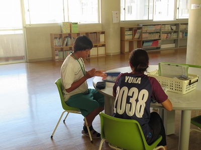 ①図書グループ 図書の整理に熱心に取り組みました。