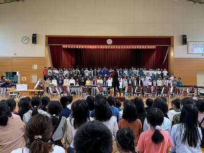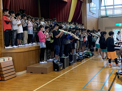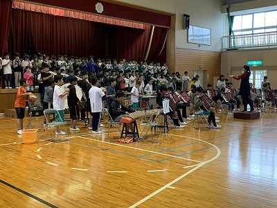 本日、昼休みに体育館で6年生の連合音楽会発表会が