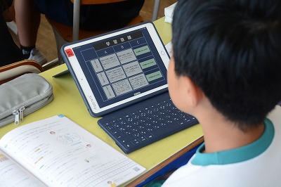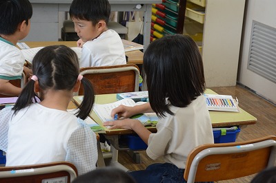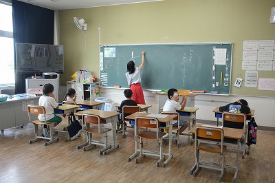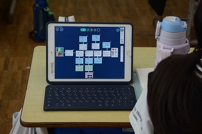◇算数 担任は授業の最初に自由進度学習についての説明をします。そのあと、子どもたちにどのように学習をすすめていくのか表を提示しながら丁寧に説明をしていました。