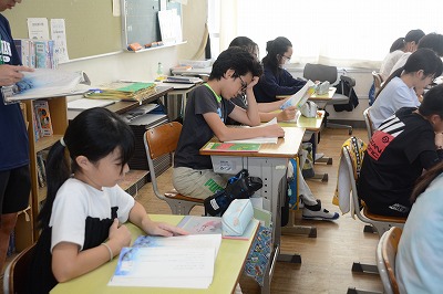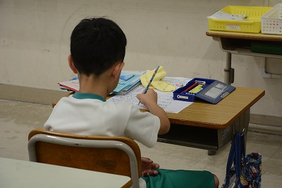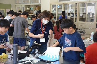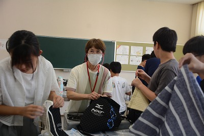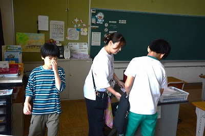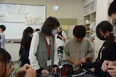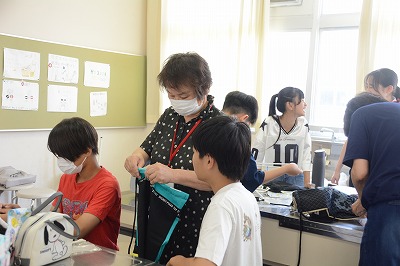 今日も3・4限目と5・6限目にあわせて15名のボランティアさんにきていただきました。もう、ナップザックが出来上がった子もでてきました。