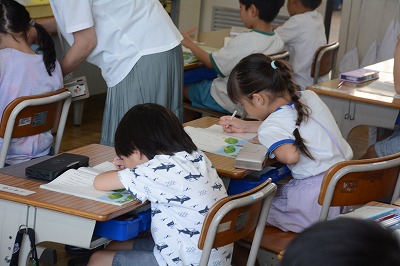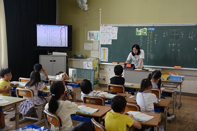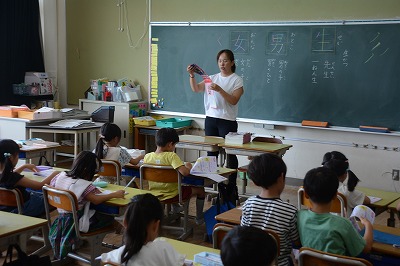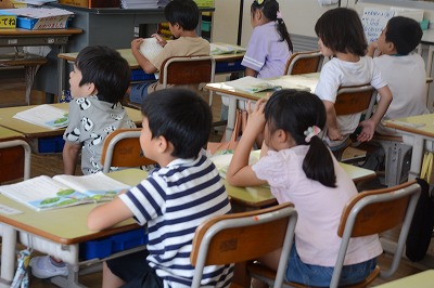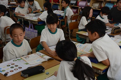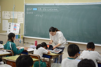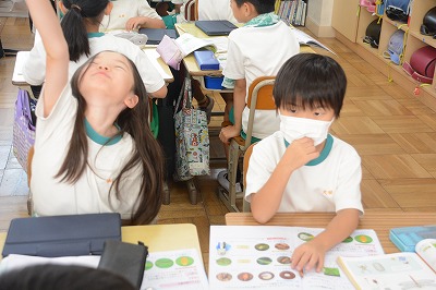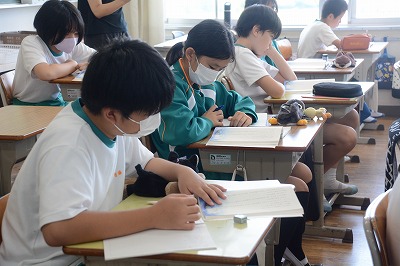 ◇理科 今日の学習の流れを担当は説明しました。子どもたちはしっかりと聞いています。