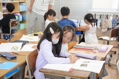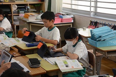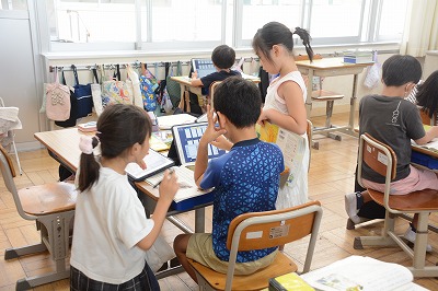 ◇道徳「友情のかべ新聞」与えられたテーマについて自分の考えをまとめていきました。時々、他者参照機能を使って、他の友だちがどのようにしてまとめているのかを参考にすることができます。