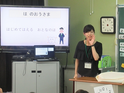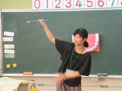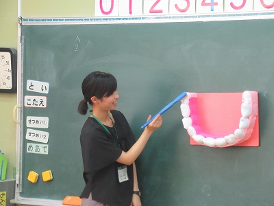 1年生の各学級で、歯の保健指導を行っています。