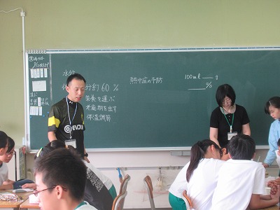 健康な毎日を送るうえで、水分補給は大切です。 熱中症予防にもつながります。 しかし、その補給する水分に含まれている糖分は・・・? 6年生が食教育の時間に、糖度計ではかってみました。  計ってみると、ミルクティーにやはりたくさんの糖が含まれていることがわかりました。 子どもたちから驚きの声が上がったのは、スポーツ飲料の糖度が予想以上に高かったことです。 500mlに30グラムも入っているのです。 糖分の一日の摂取は20グラムがめやすということも学習し、水分補給も大切だけど、何を飲むかを選ぶことも大切と学ぶ時間になりました。 |