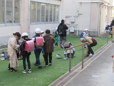 今日は引き渡し訓練でした。今回は雨天時等運動場では引き渡しができないという想定で各教室で保護者に引き渡しました。密を避けるため地区別に時間差で来校いただきました。保護者の皆様、お忙しいところご協力をいただきありがとうございました。