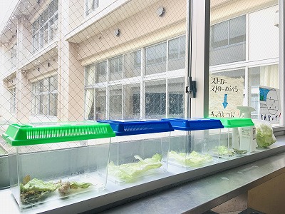 みんなが学校に来る日を、モンシロチョウのよう虫たちも