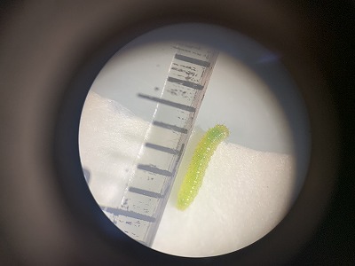 モンシロチョウのよう虫が少しずつ大きくなってきました。