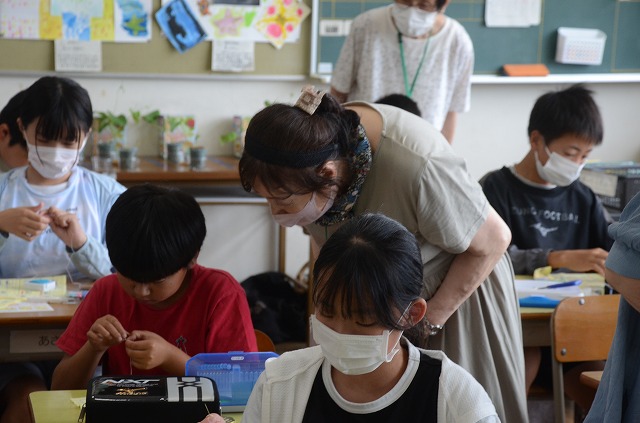 今日は11名の家庭科支援ボランティアの方が来ていただき、子どもたちも安心して裁縫をすることができました。
