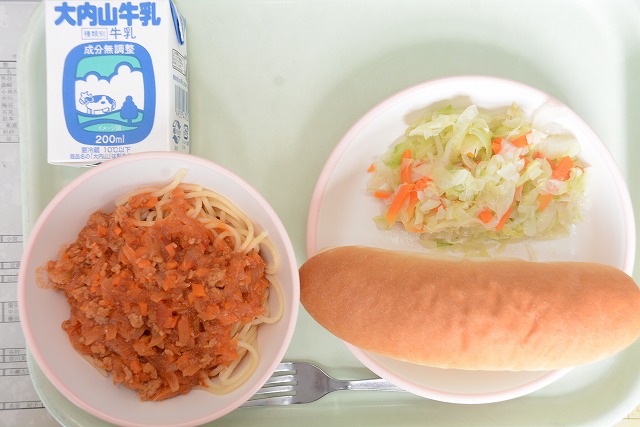 【給食】パン・牛乳 スパゲッティ・サラダ