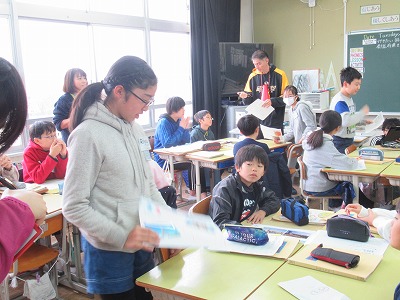 ロベルト先生からの質問には、英語で答えられる時もありましたが、ジェスチャーや絵を描いて答えるなど、班で協力しながら一生懸命に答えていました。