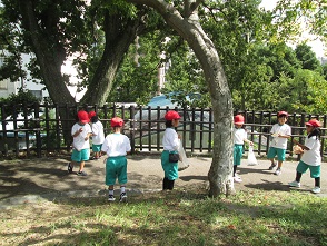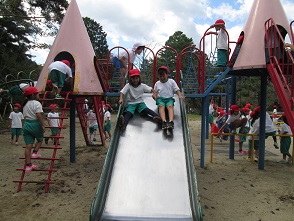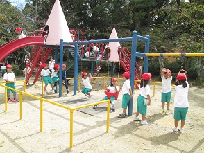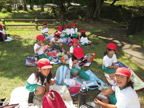 良い天気に恵まれ、津偕楽公園に行ってきました。みんなで乗る電車は楽しくて、ついつい声が出そうになりましたが、まわりにお客さんもたくさん乗っているのでがまんがまん。公園では元気いっぱい遊んできました。どんぐりや、まつぼっくり、落ち葉など秋見つけをし、おいしいお弁当、おやつを食べ、とっても楽しい一日でした。