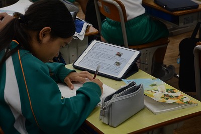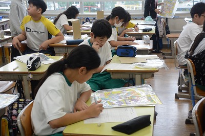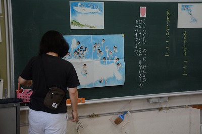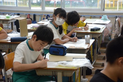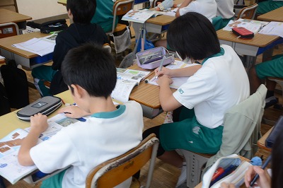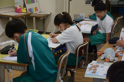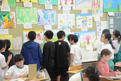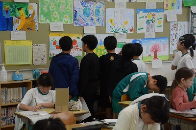 ◇図工 自分や友だちの作品を見ながら鑑賞カードに工夫やすてきなところを書き込んでいました。