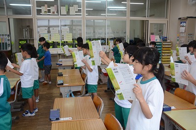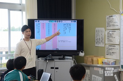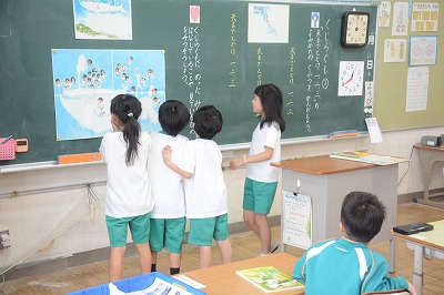 ◇国語 くじら雲 話し合いの練習を代表として前で見本を見せてくれています