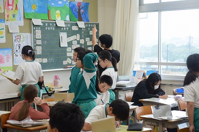 ▼学習の流れやゴールを説明します。子どもたちはそれまでの過程を自己決定していきます。