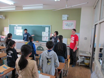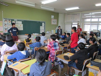 担任の稲生先生が出張のため、英語専科の三好先生によるレッスンです。今日はALTのロベルト先生、ボランティアのミカ先生も補助に入ってくださいました。