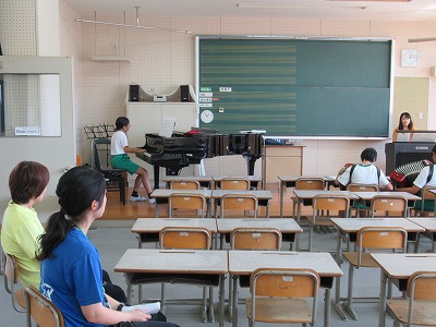 20分休みと昼休みには、音楽室から練習やオーディションの演奏が聞こえます。