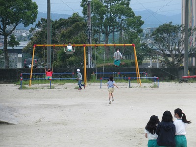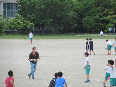 休み時間です。ALTのマシュー先生も一緒に遊んでいます。( ^)o(^ )
