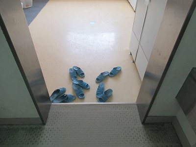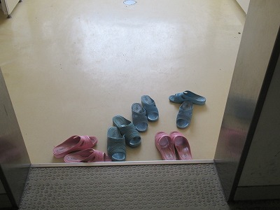 トイレのスリッパがそろってないですね。残念です。このトイレはどこでしょうか?