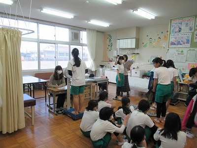 学年学級ごとに割り振られた時間に保健室で測定をしていきますが、どのクラスも整然と行うことができるのでとてもスムーズに進んでいます。