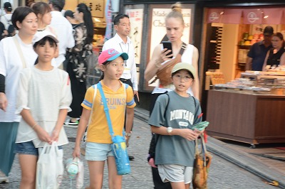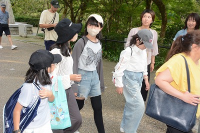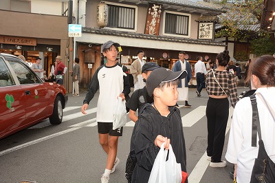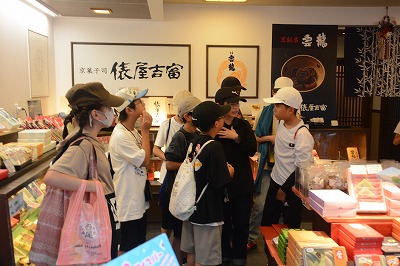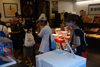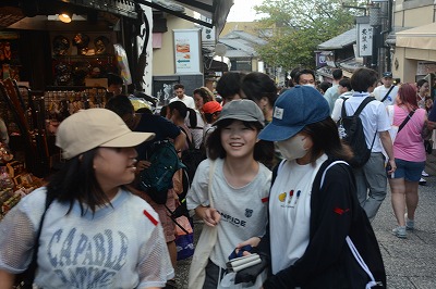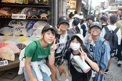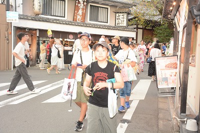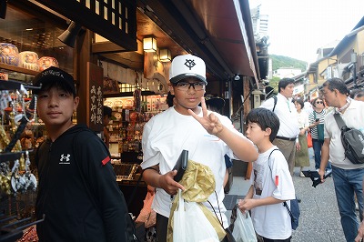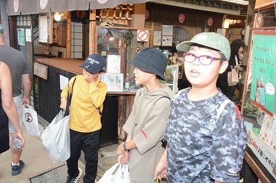 清水の駐車場でバスを降りた時、真っ黒い雲がかかっていて大粒の雨が降り出しましたが数分でその雨もやみました。子どもたちはゆっくりと買い物を楽しむことができ、「楽しー」と言って通り過ぎました。