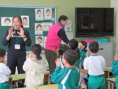 Feeling song を大きな声でジェスチャーをつけて歌いました。