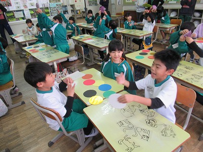 ペアで上手にカードをそろえて合っていたら大喜びです。