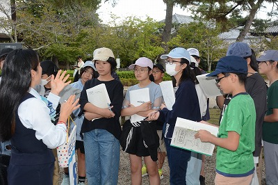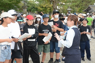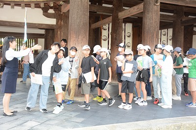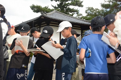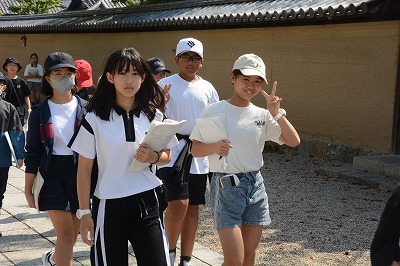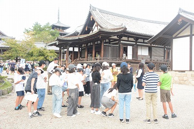 予定通り9:30に法隆寺に到着しました。到着した時間帯はまだ他の学校もそれほど来ていなくてゆっくりと見学をすることができました。五重の塔、金堂、大講堂などを見学しました。