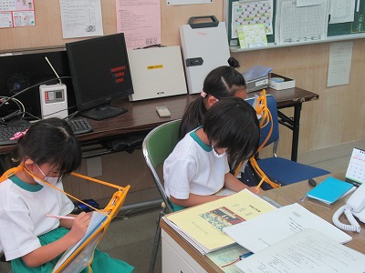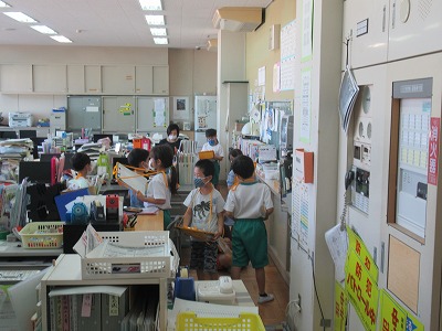 1年生は1・2限目に学校たんけんをしました。各自が行きたい場所を決め、グループに分かれてたんけんしました。