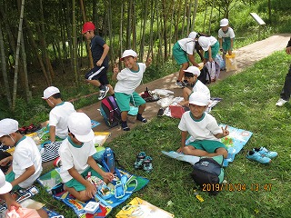 青空の下で食べるお弁当もとってもおいしく、満面の笑みで食べていました