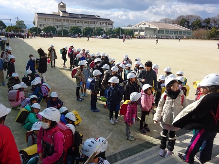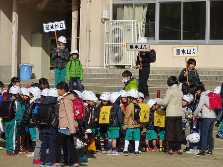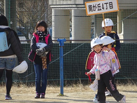 今日、本年度最後の地区別一斉下校を行いました。1年前、どこに行けば良いかまったく分からず、ひたすら6年生のお迎えを待っていた1年生が、年末の一斉下校からは自力で集合場所に行くようになりました。今回はさらに自信が付き、全体の集合もてきぱきと短時間でできました。この下校方法は緊急時に行いますから、早く集まることが非常に大切になります。これからも年数回の訓練を通して、少しでも迅速な一斉下校ができるよう内容を改善していきます。