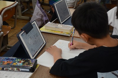 自分が考えたことを友だちの考えも聞きながら学習をすすめています。