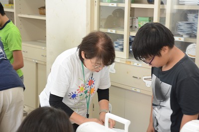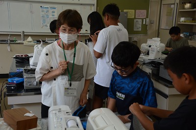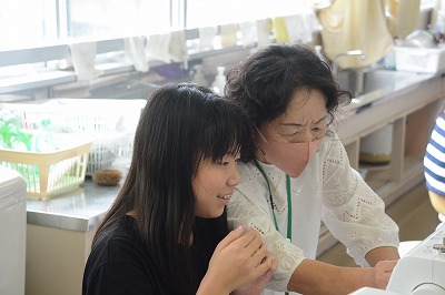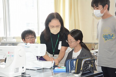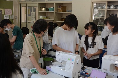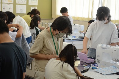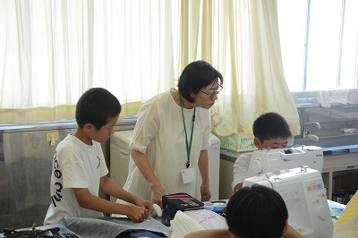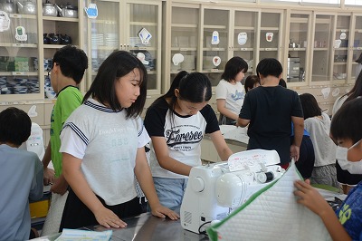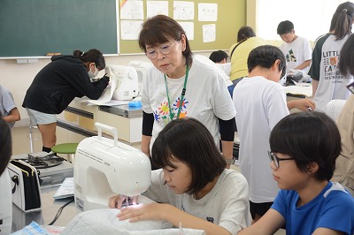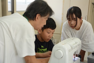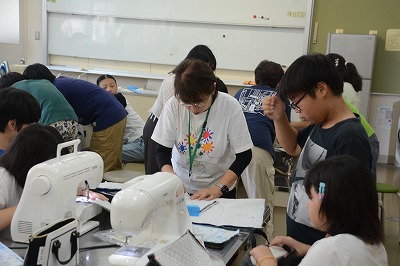 ◇家庭科ミシンを使ってナップサックを作ります。今日は12名の方のボランティアの方に来ていただきました。